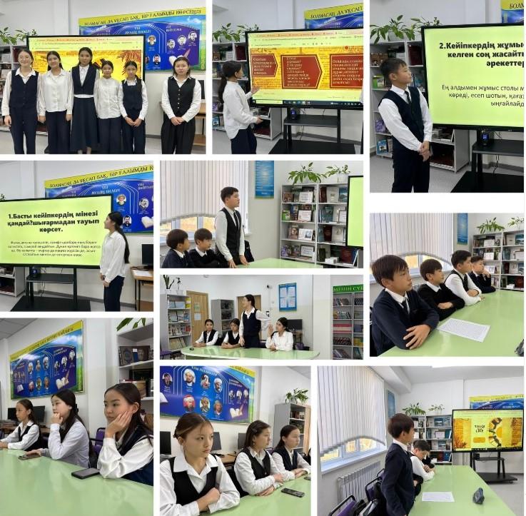 25 ноябрь 2025 0 1 2 3 4 5 “ТALQILIKE” жобасы аясында 7 “В” сынып оқушылары О.Бөкейдің “Бес тиын” әңгімесін талдады Оқушылар кейіпкер бейнесі арқылы адалдықтың, ұқыптылықтың және адамдық қасиеттің шынайы бағасын түсінді.Әңгіменің астарындағы ойды талдап, кейіпкердің тұлғасы арқылы ар-ұят, адамдық және ұқыптылық туралы пікір алмасты.