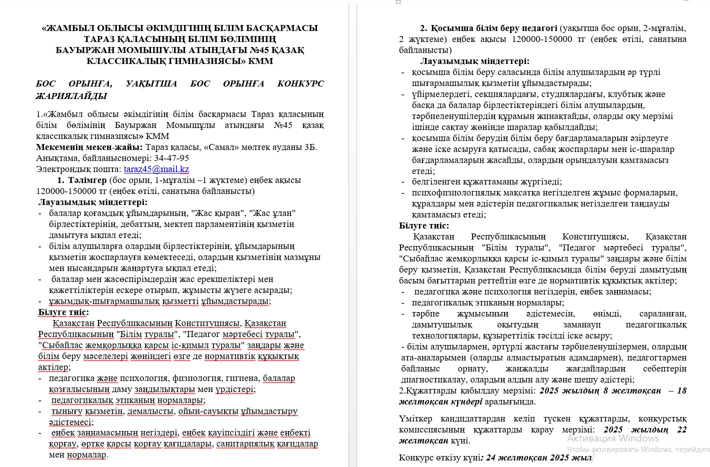 КОНКУРС ЖАРИЯЛАЙДЫ » Гимназия №45