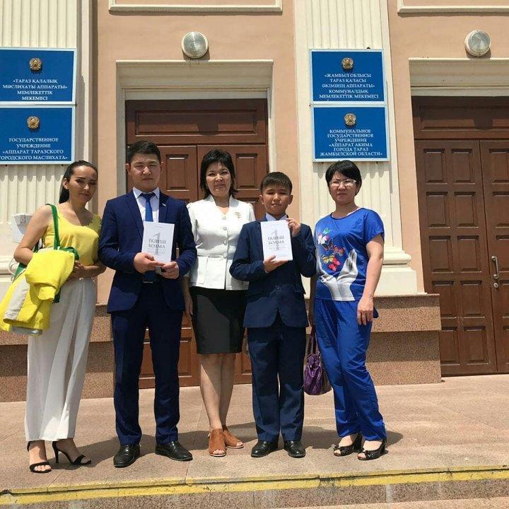 7 "А" сыныбының оқушылары Әмірбек Тоқтар мен Тұрыс Әмір гимназияның дарынды оқушылары ретінде қала әкімімен кездесуде болып, Қ.Шоңбайдың "Екінші болма" кітабын сыйға алды